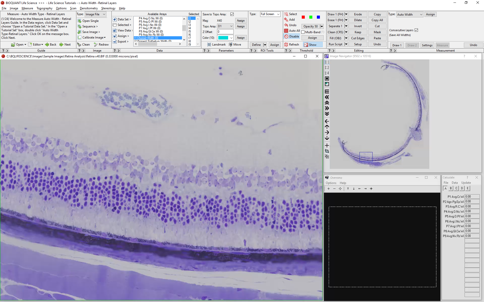 Simply repeat the protocol for each remaining field of view. BIOQUANT will keep track of individual widths, showing you the running average in the calculations box.